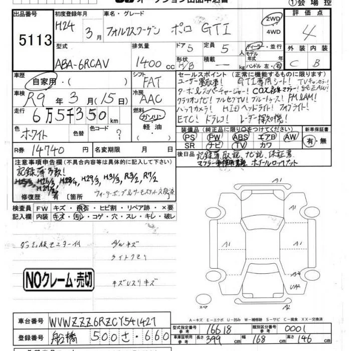 Volkswagen POLO с аукциона Японии JU Chiba лот № 5113
