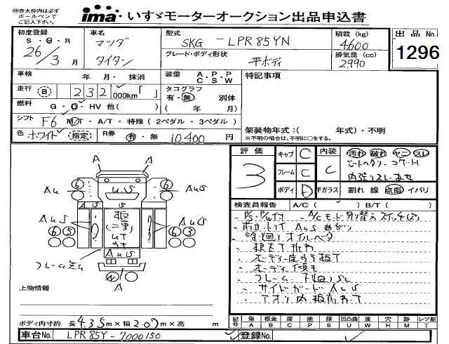 Mazda TITAN с аукциона Японии Isuzu Kobe лот № 1296