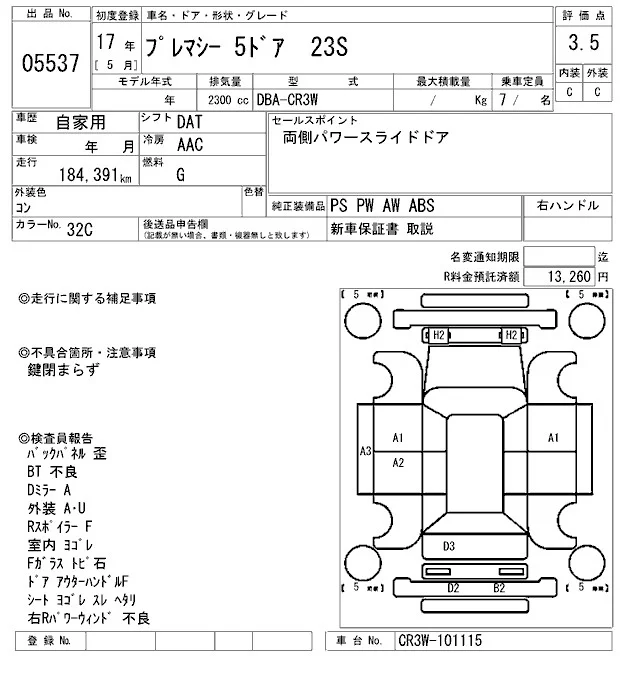 Mazda PREMACY с аукциона Японии ARAI Bayside лот № 5537