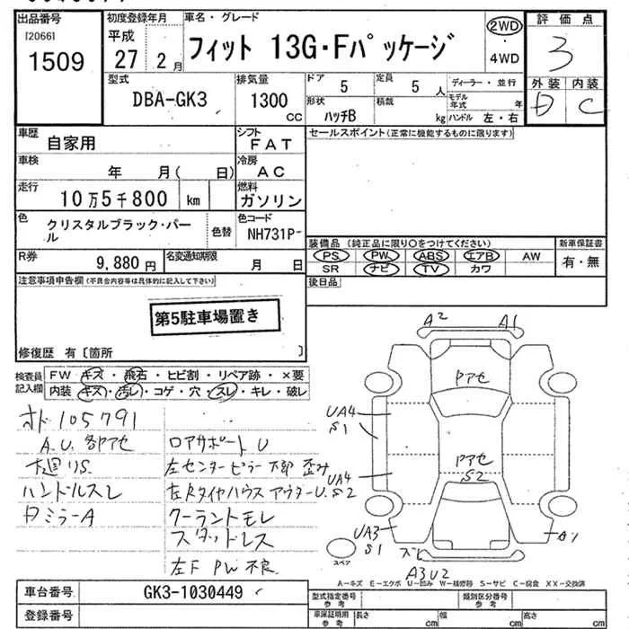 Honda FIT с аукциона Японии JU Niigata лот № 1509