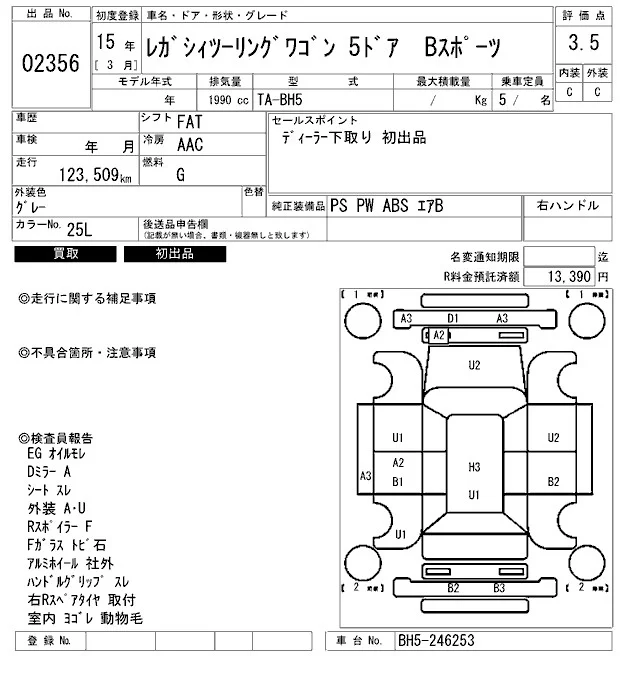 Subaru LEGACY с аукциона Японии ARAI Bayside лот № 2356
