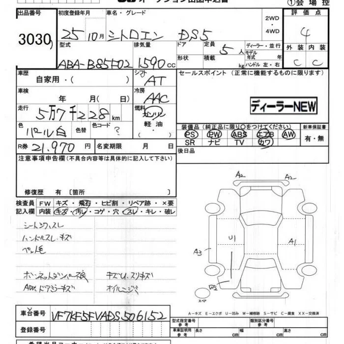 Citroen DS5 с аукциона Японии JU Chiba лот № 3030