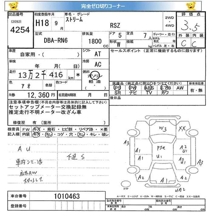 Honda STREAM с аукциона Японии JU Miyagi лот № 4254