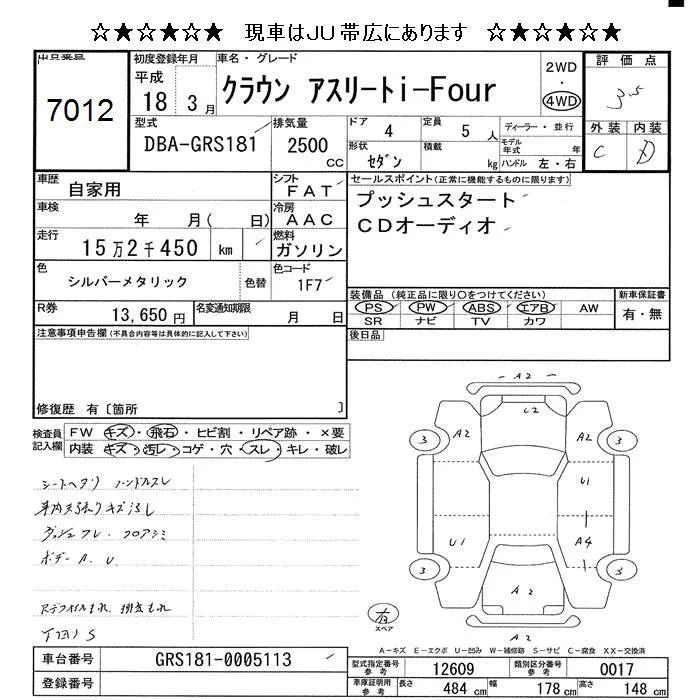 Toyota CROWN с аукциона Японии JU Hokkaido лот № 7012