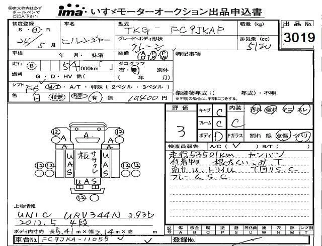 Hino RANGER с аукциона Японии Isuzu Kobe лот № 3019