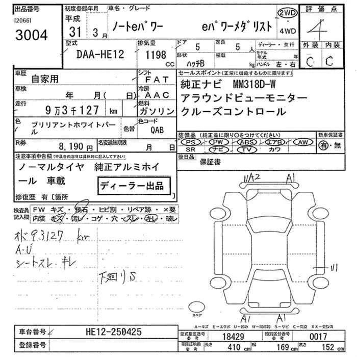 Nissan NOTE с аукциона Японии JU Niigata лот № 3004
