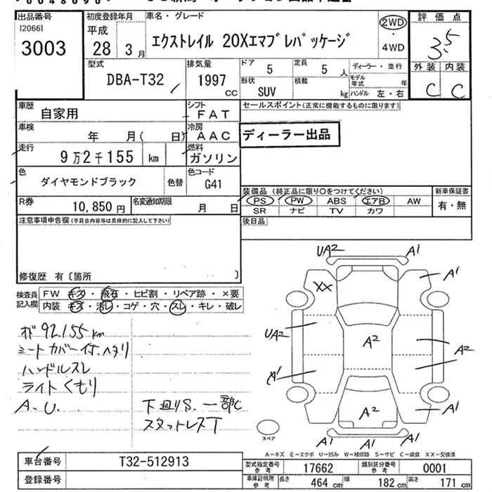 Nissan X-TRAIL с аукциона Японии JU Niigata лот № 3003