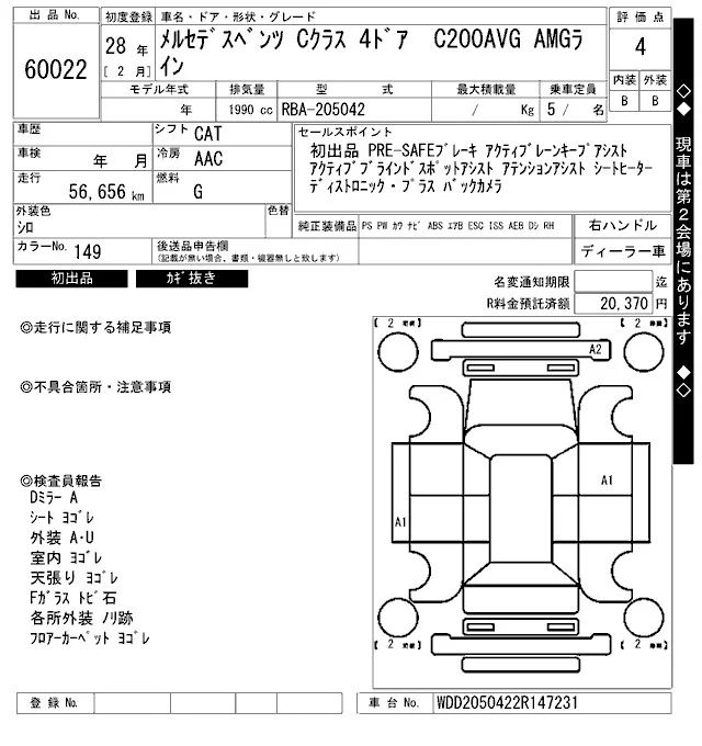 Mercedes-Benz C CLASS с аукциона Японии ARAI Bayside лот № 60022