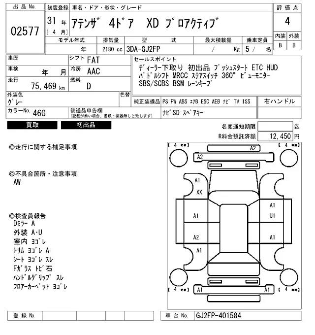 Mazda ATENZA SEDAN с аукциона Японии ARAI Bayside лот № 2577