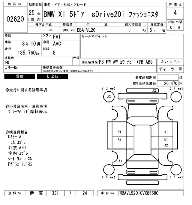 BMW X1 с аукциона Японии ARAI Bayside лот № 2620
