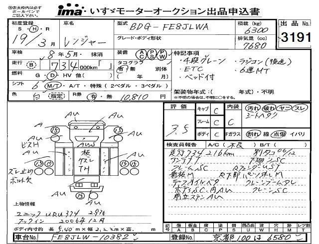 Hino RANGER с аукциона Японии Isuzu Kobe лот № 3191