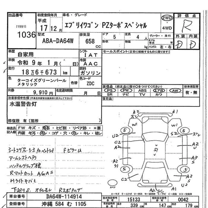 Suzuki EVERY WAGON с аукциона Японии JU Okinawa лот № 1036