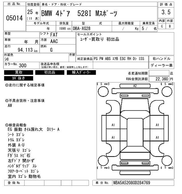 BMW 5-Series с аукциона Японии ARAI Bayside лот № 5014