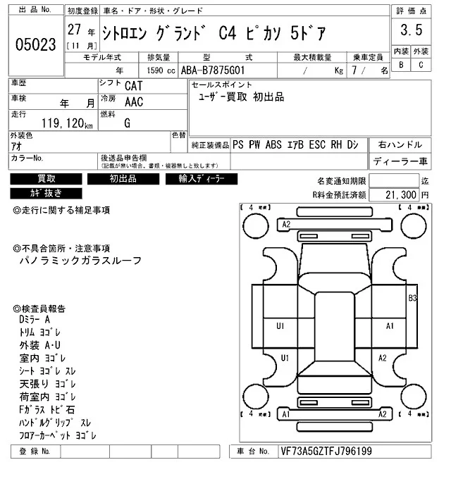 Citroen GRAND C4 с аукциона Японии ARAI Bayside лот № 5023