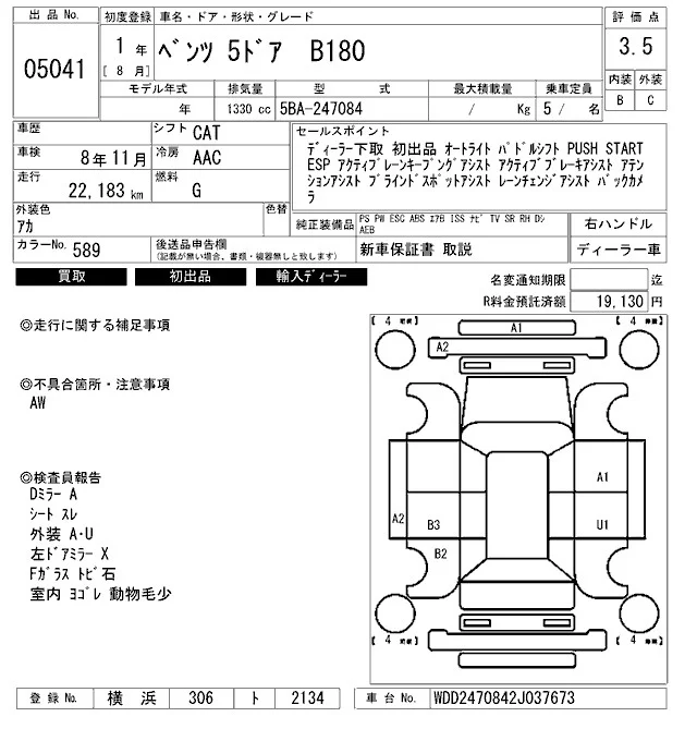 Mercedes-Benz B CLASS с аукциона Японии ARAI Bayside лот № 5041