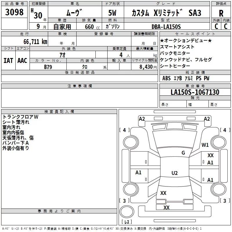 Daihatsu MOVE с аукциона Японии TAA Hyogo лот № 3098