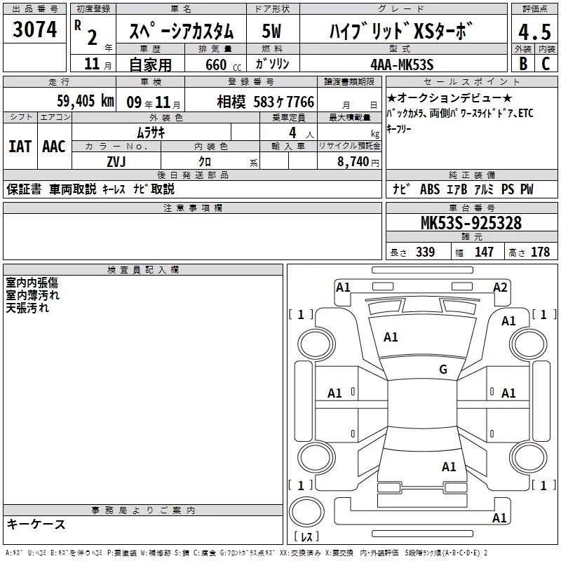 Suzuki SPACIA с аукциона Японии TAA Yokohama лот № 3074