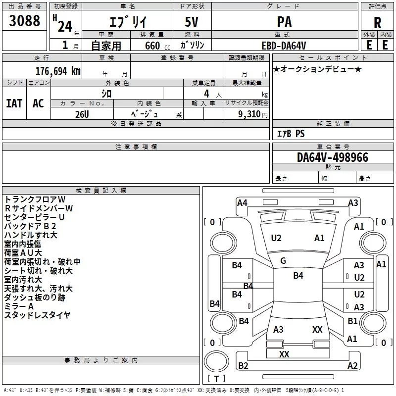 Suzuki EVERY с аукциона Японии TAA Yokohama лот № 3088