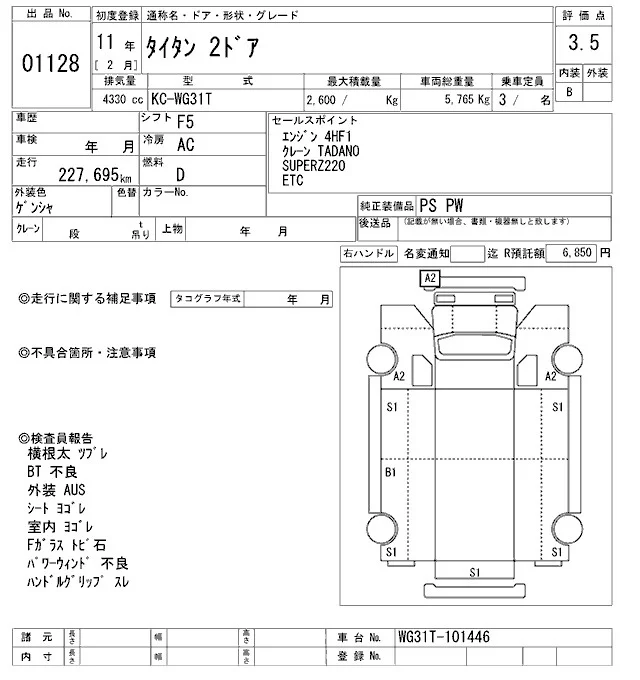 Mazda TITAN с аукциона Японии ARAI Oyama VT лот № 1128
