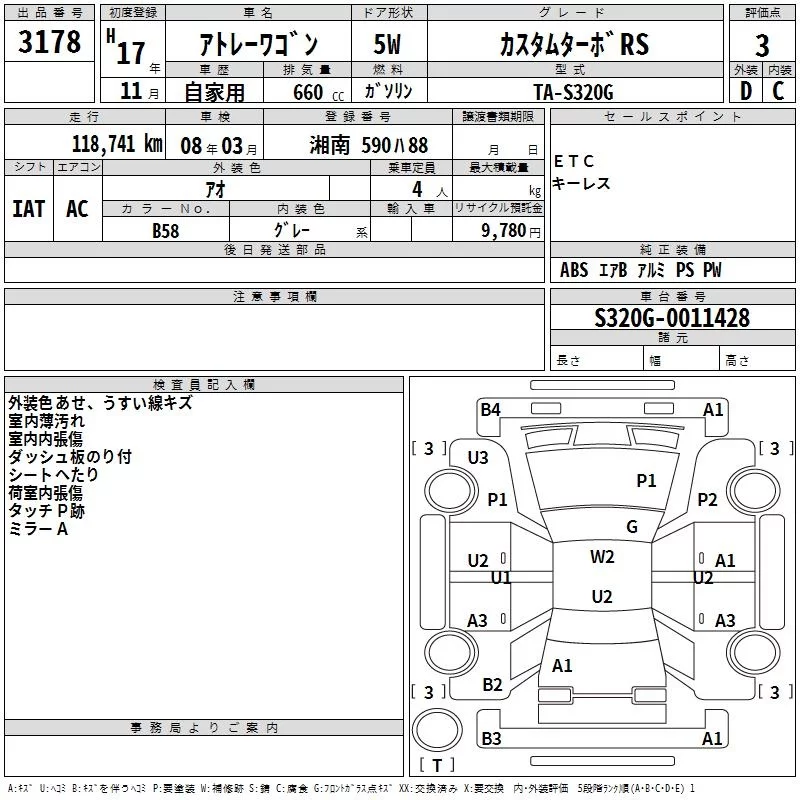 Daihatsu Atrai Wagon с аукциона Японии TAA Yokohama лот № 3178