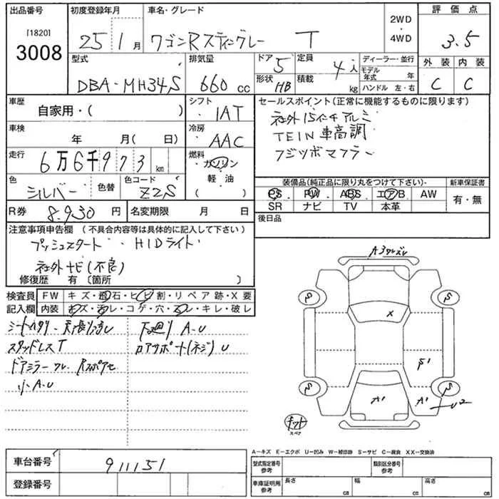 Suzuki WAGON R с аукциона Японии JU Nara лот № 3008