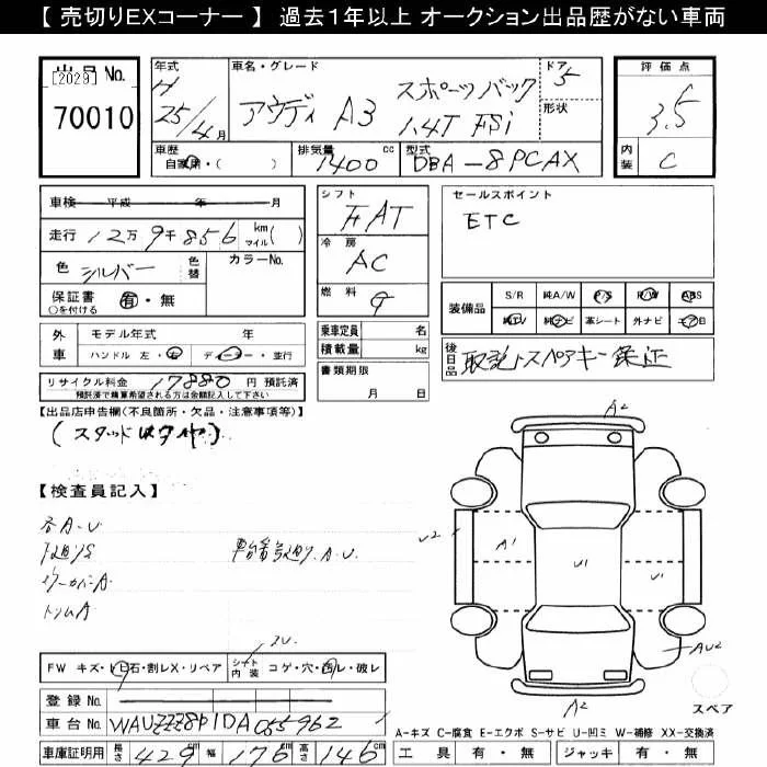 Audi A3 с аукциона Японии JU Gifu лот № 70010