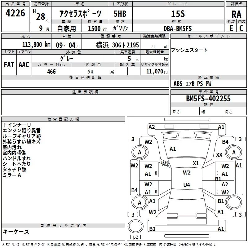 Mazda AXELA с аукциона Японии TAA Yokohama лот № 4226