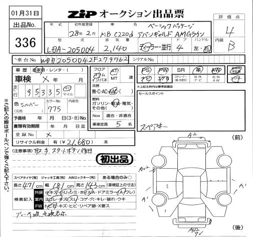 Mercedes-Benz C CLASS с аукциона Японии ZIP Tokyo лот № 336