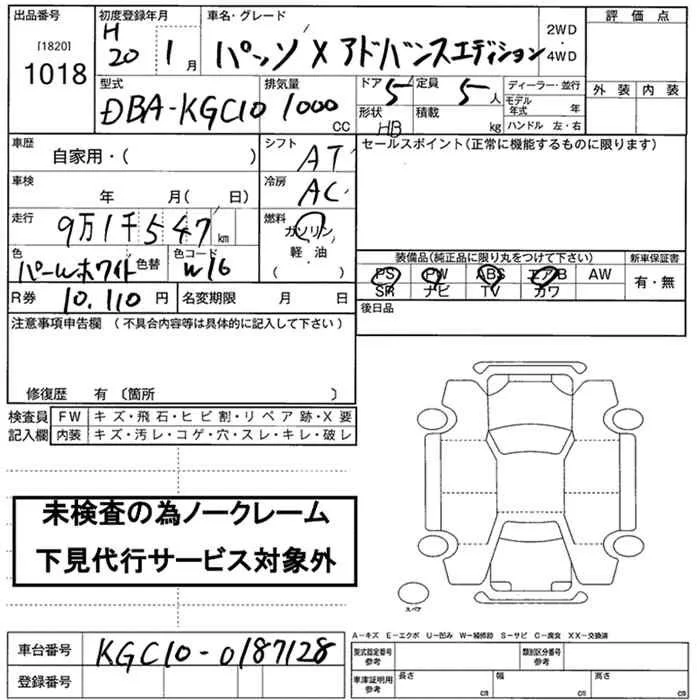 Toyota PASSO с аукциона Японии JU Nara лот № 1018
