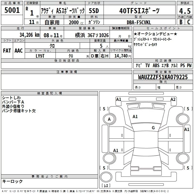 Audi A5 с аукциона Японии TAA Yokohama лот № 5001