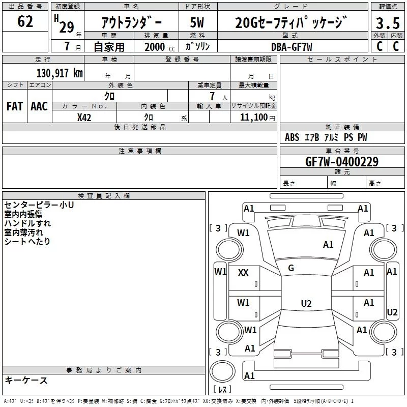 Mitsubishi OUTLANDER с аукциона Японии TAA Yokohama лот № 62