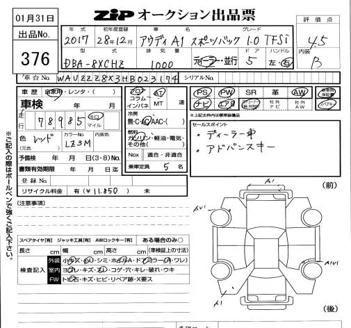 Audi A1 с аукциона Японии ZIP Tokyo лот № 376