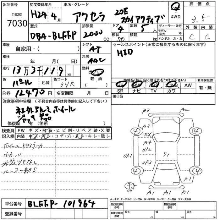 Mazda AXELA с аукциона Японии JU Nara лот № 7030