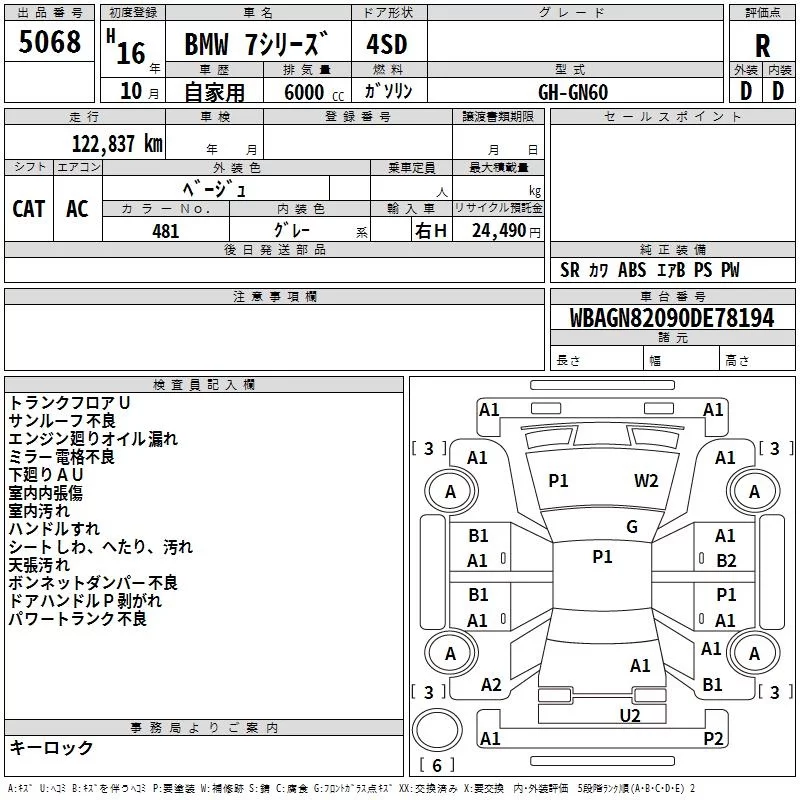 BMW 7-Series с аукциона Японии TAA Yokohama лот № 5068