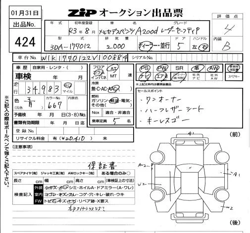 Mercedes-Benz A CLASS с аукциона Японии ZIP Tokyo лот № 424