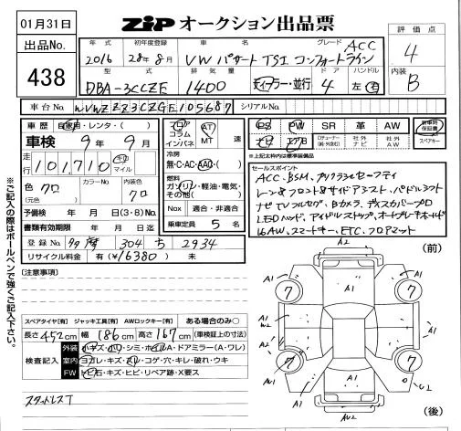 Volkswagen PASSAT с аукциона Японии ZIP Tokyo лот № 438