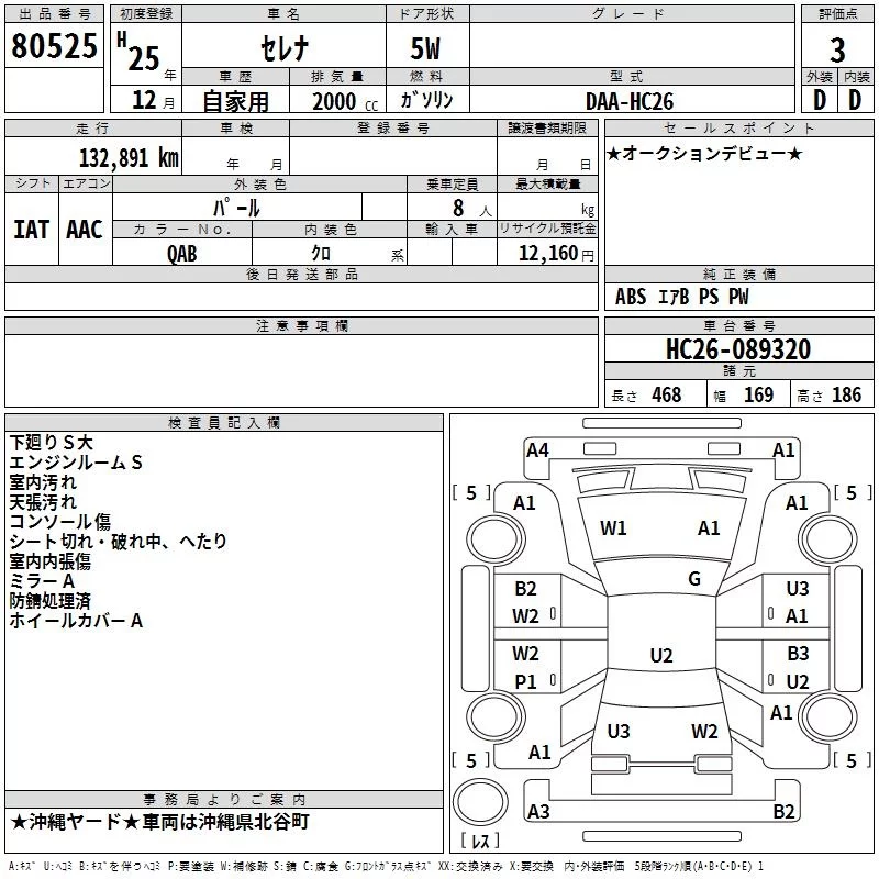 Nissan SERENA с аукциона Японии TAA Yokohama лот № 80525