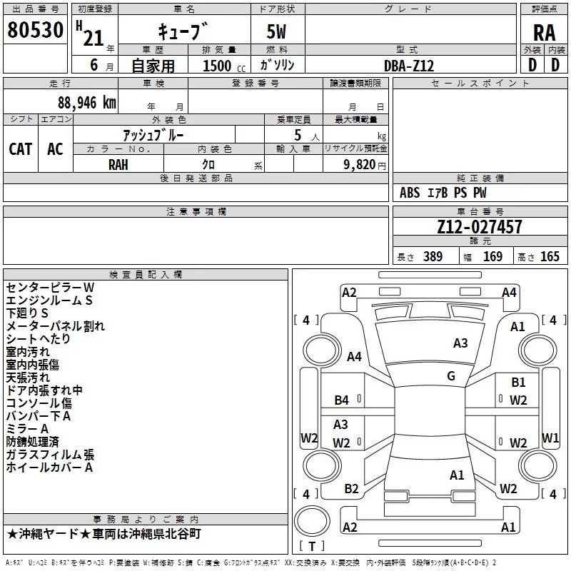 Nissan CUBE с аукциона Японии TAA Yokohama лот № 80530