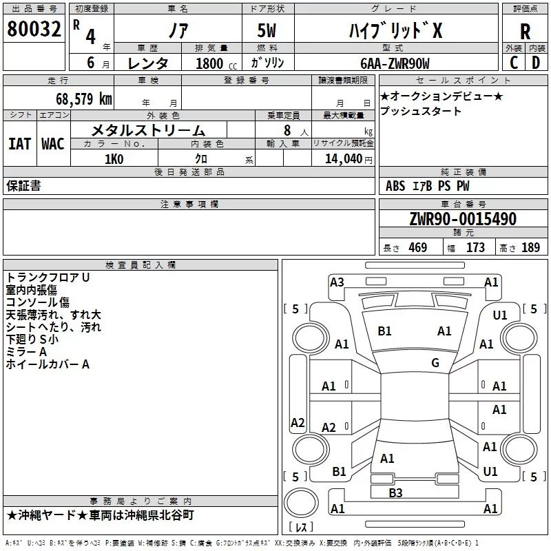 Toyota NOAH с аукциона Японии TAA Yokohama лот № 80032