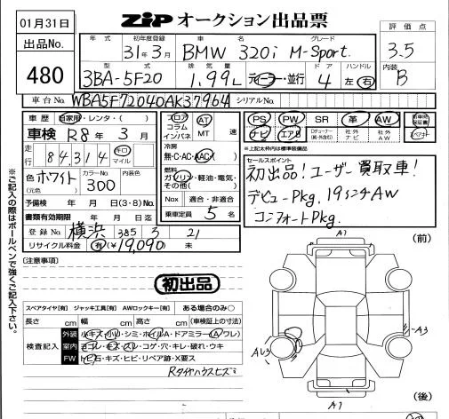 BMW 3-Series с аукциона Японии ZIP Tokyo лот № 480