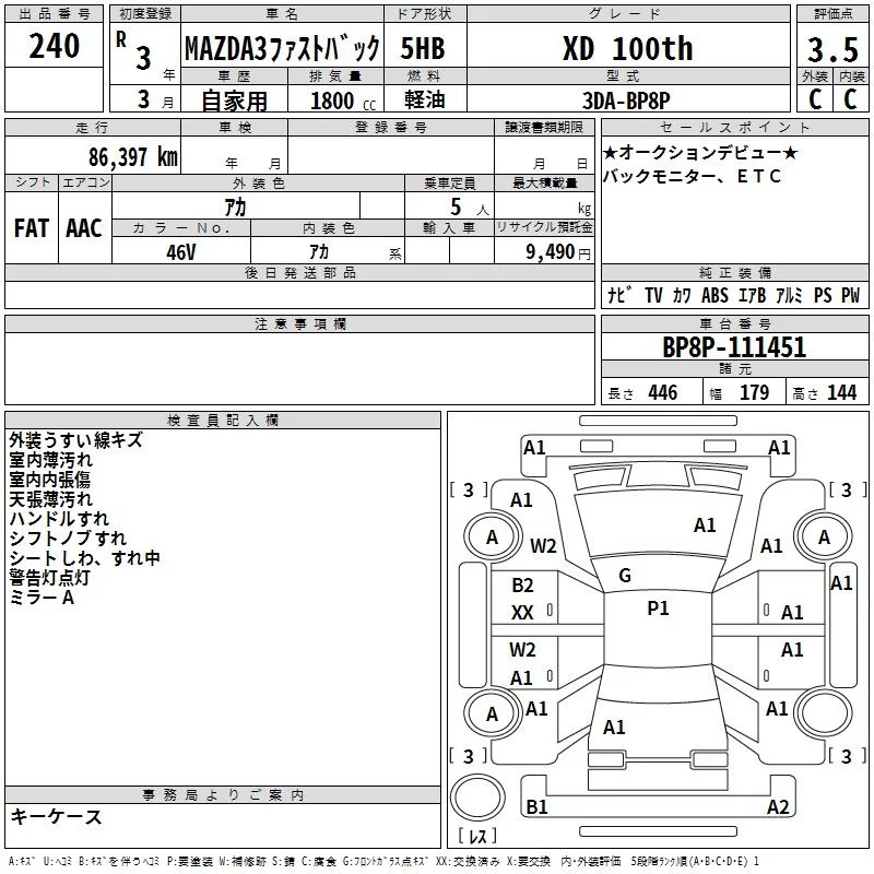 Mazda MAZDA3 с аукциона Японии TAA Yokohama лот № 240