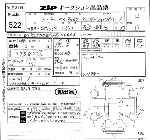 Mercedes-Benz B CLASS с аукциона Японии ZIP Tokyo лот № 522