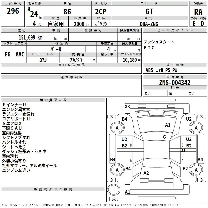 Toyota GT 86 с аукциона Японии TAA Yokohama лот № 296