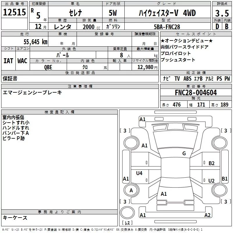 Nissan SERENA с аукциона Японии TAA Yokohama лот № 12515