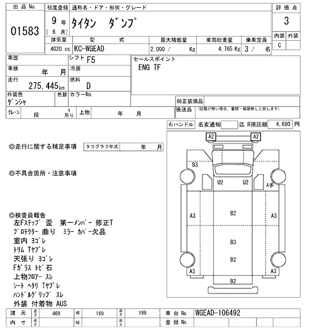 Mazda TITAN с аукциона Японии ARAI Oyama VT лот № 1583