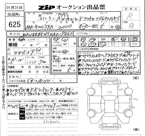 Audi A4 с аукциона Японии ZIP Tokyo лот № 625