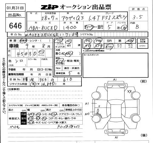 Audi Q3 с аукциона Японии ZIP Tokyo лот № 646