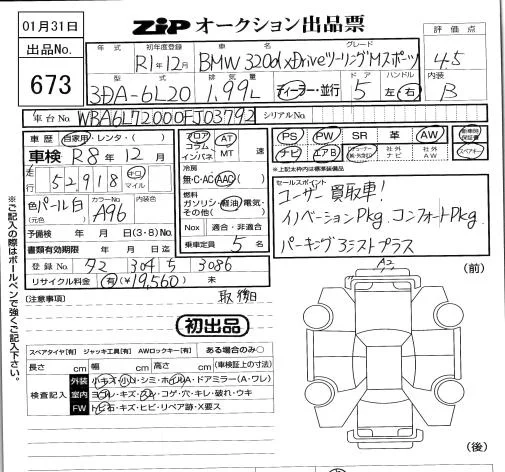 BMW 3-Series с аукциона Японии ZIP Tokyo лот № 673