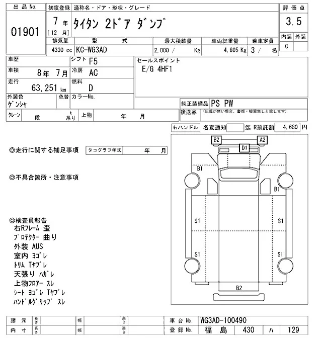 Mazda TITAN с аукциона Японии ARAI Oyama VT лот № 1901