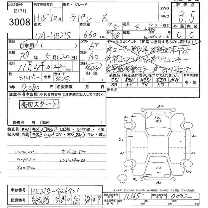 Suzuki ALTO LAPIN с аукциона Японии JU Tokyo лот № 3008